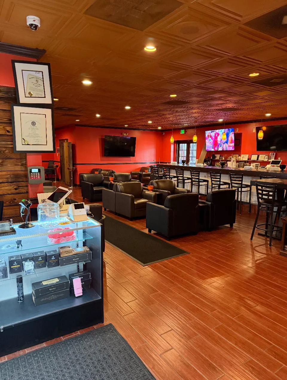 Enjoy a warm, sophisticated atmosphere with plush seating designed for comfort and conversation. Burnt Leaf offers a premium selection of cigars in a setting made for true relaxation.